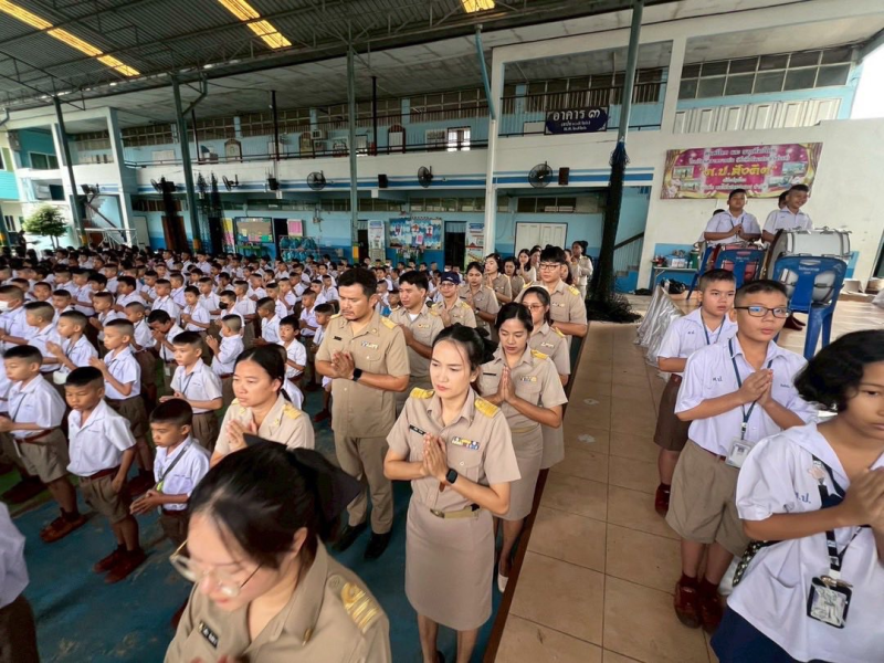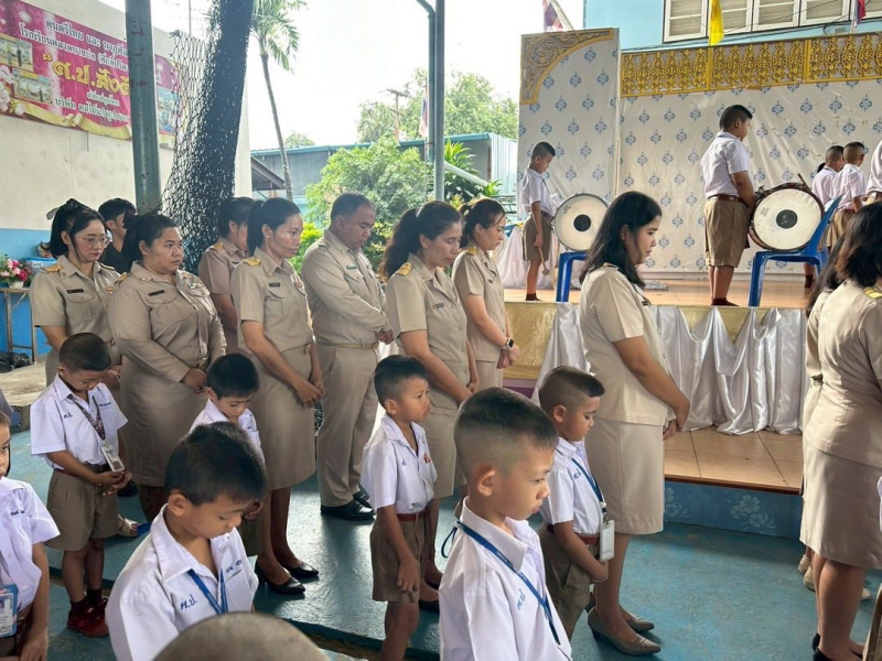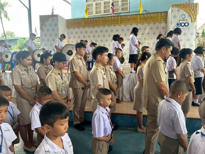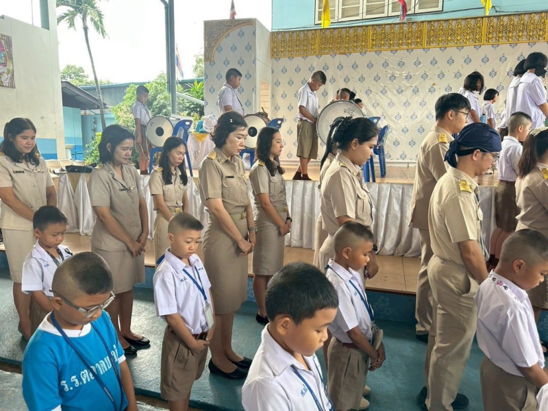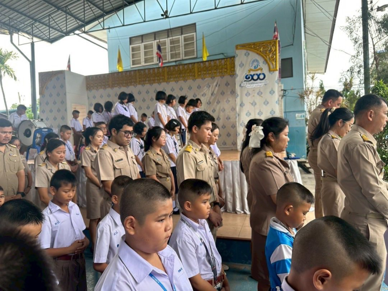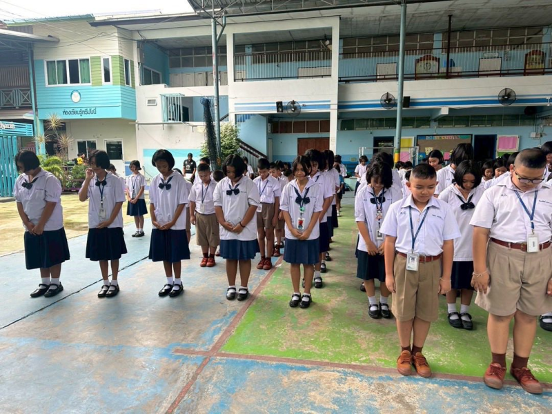 วันที่ 3 พฤศจิกายน 2568 ผู้บริหาร คณะครู และนักเรียนโรงเรียนตลาดบางบ่อ(ศักดิ์ปรีดาประชาสรรค์) ร่วมยืนสงบนิ่งน้อมถวายความอาลัย สมเด็จพระนางเจ้าสิริกิติ์ พระบรมราชินีนามราชินีนาถ พระบรมราชนนีพันปีหลวง ในวันเปิดภาคเรียนที่ 2/2568