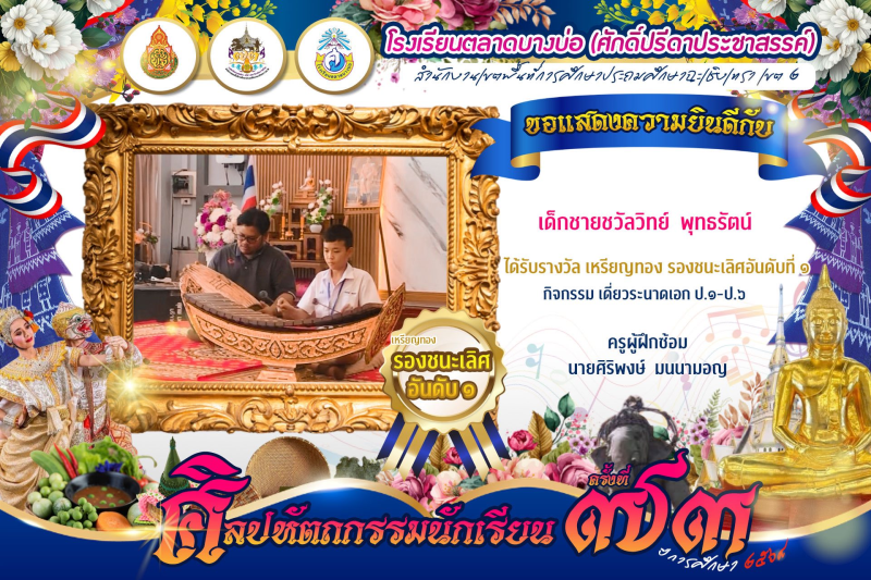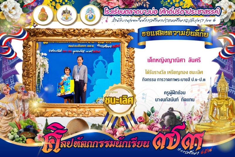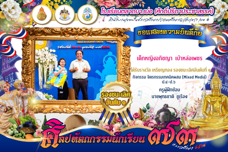📣 Congratulations 🎉 โรงเรียนตลาดบางบ่อ(ศักดิ์ปรีดาประชาสรรค์) นำโดยว่าที่ร้อยตรีรัฐพงษ์ มีพงศ์ ผู้อำนวยการโรงเรียน รองผู้อำนวยการโรงเรียน พร้อมด้วยคณะครูและบุคลากรทางการศึกษา 🥳ขอแสดงความยินดีกับนักเรียนทุกคนที่เข้าร่วมและได้รับรางวัลจากการแข่งขันศิลปหัตถกรรมนักเรียนครั้งที่ 73 ซึ่งเป็นเวทีแสดงศักยภาพ ทั้งด้านวาดภาพระบายสี งานประดิษฐ์ หัตถกรรม และทักษะวิชาการอื่นๆ ความมุ่งมั่นตั้งใจและทักษะที่นำมาแสดงถือเป็นความสำเร็จที่น่าชื่นชมของนักเรียนและครูผู้ฝึกสอนทุกคน 🎉🥇